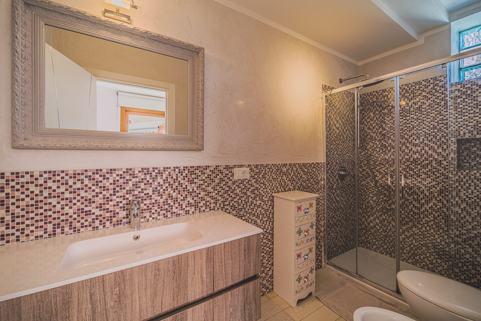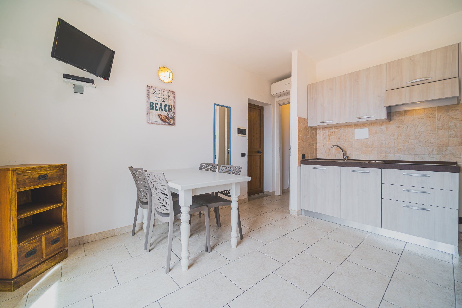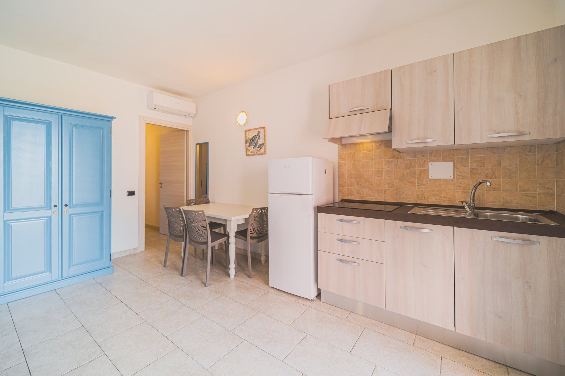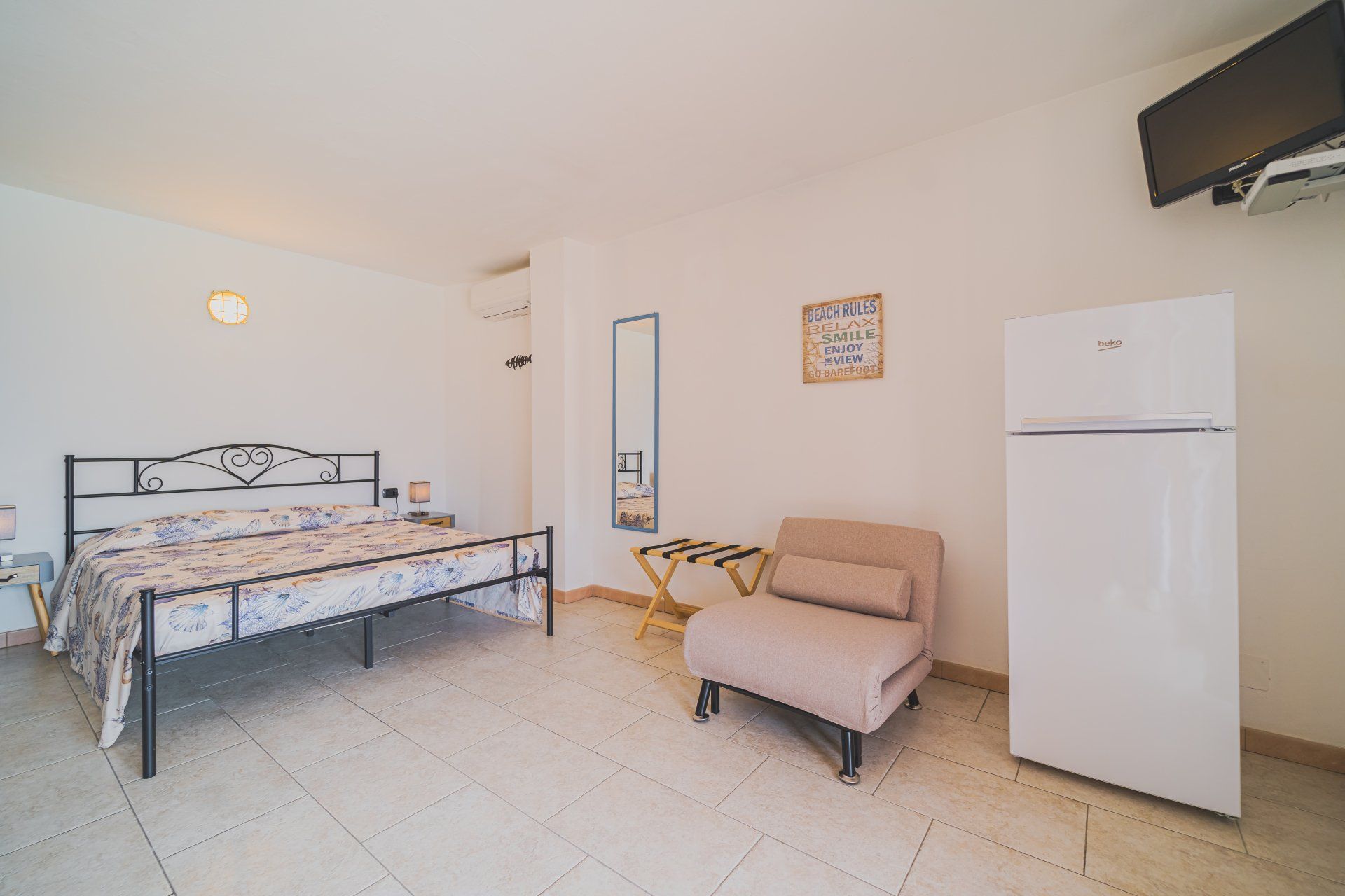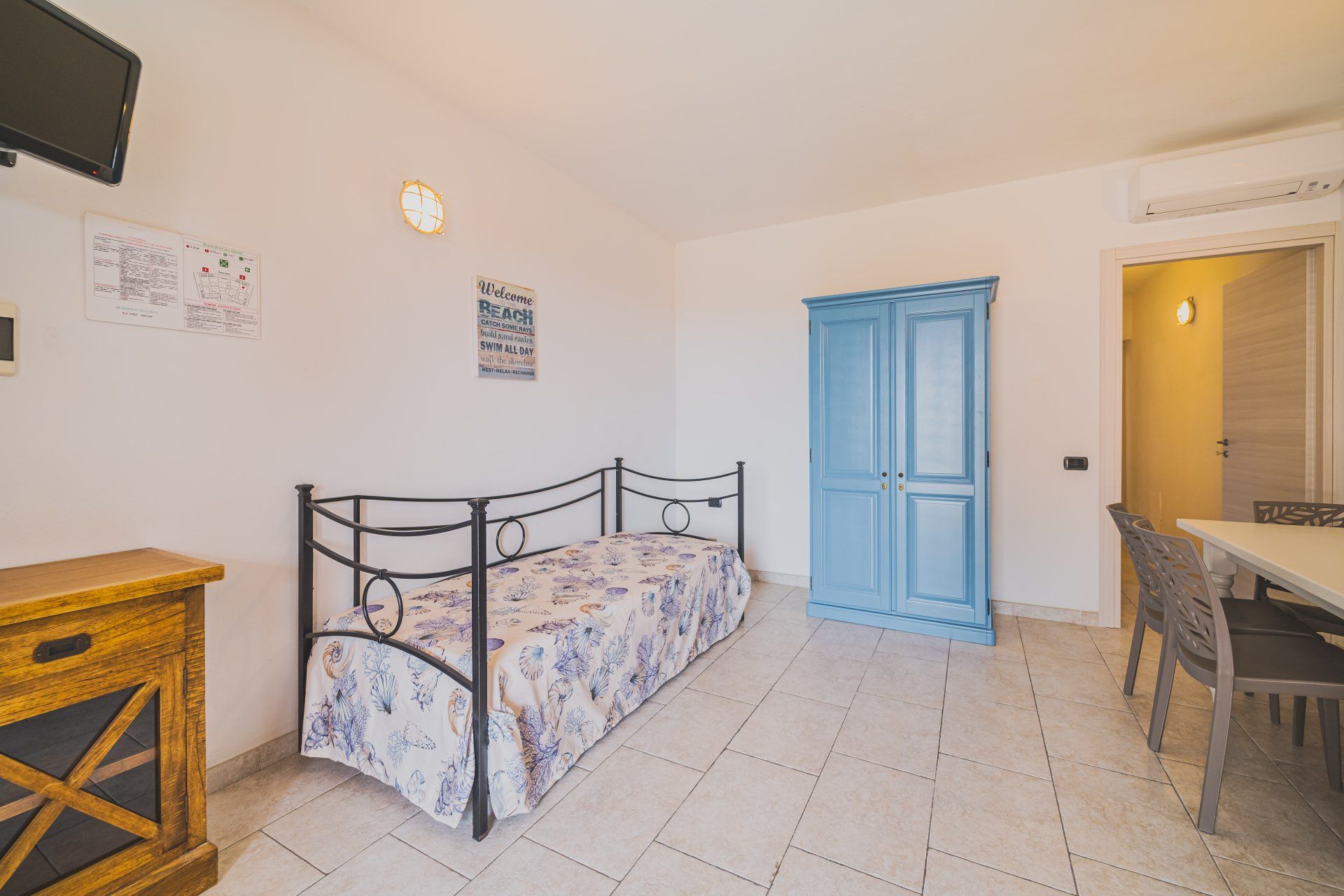 Il monolocale piano terra, circa 25mq, è composto da un soggiorno con letto matrimoniale, angolo cottura con piano ad induzione e bagno con box doccia. L’appartartamento è inoltre dotato di: