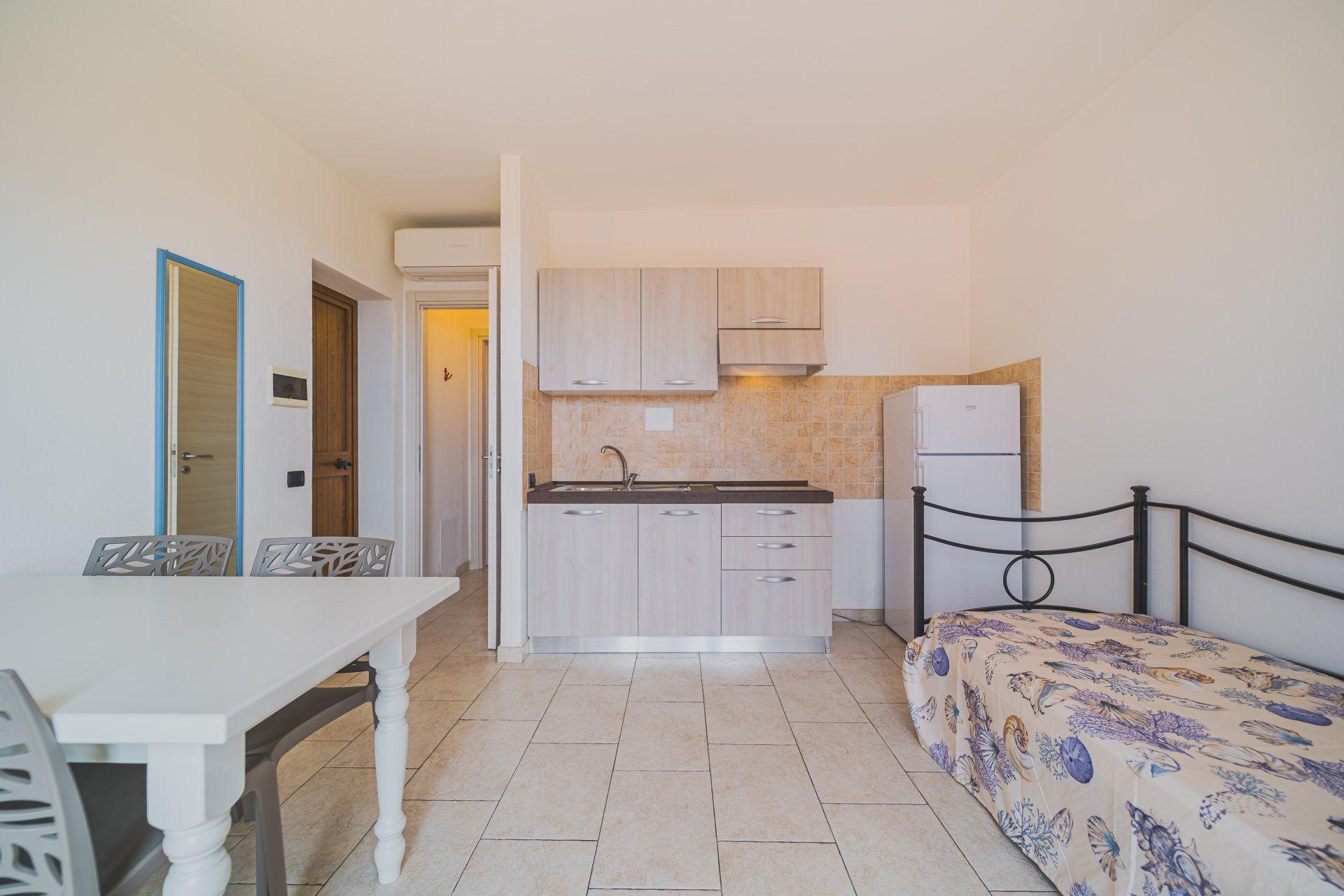 I monolocali al primo piano, di circa 30 mq, sono composti da soggiorno con letto matrimoniale e letto singolo, angolo cottura con piano ad induzione e bagno con box doccia. Sono inoltre dotati di: