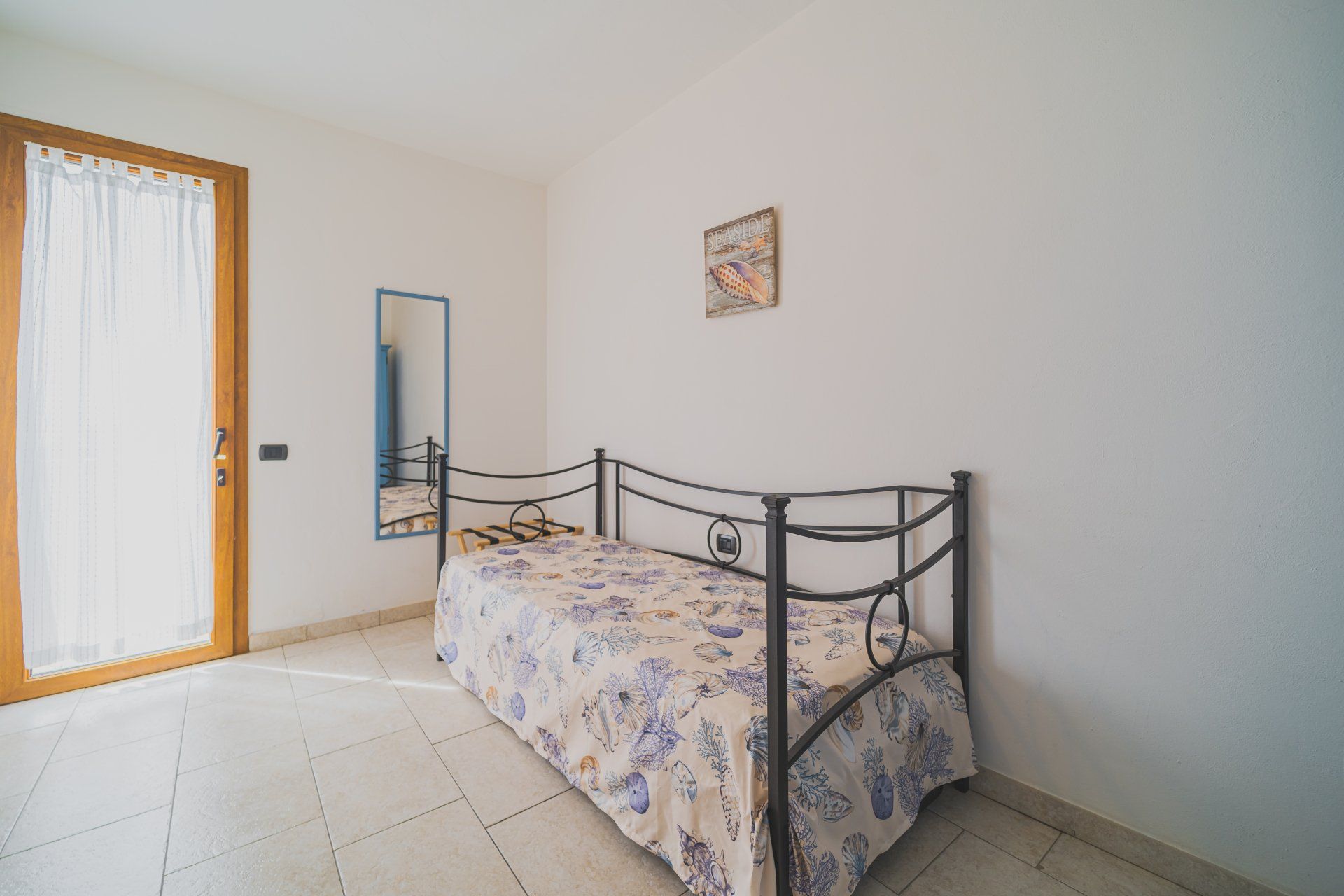 Il trilocale a piano terra , di circa 40mq, è composto da una camera con letto matrimoniale, camera con due letti singoli, soggiorno con angolo cottura, bagno con box doccia. L’appartamento è dotato inoltre di: